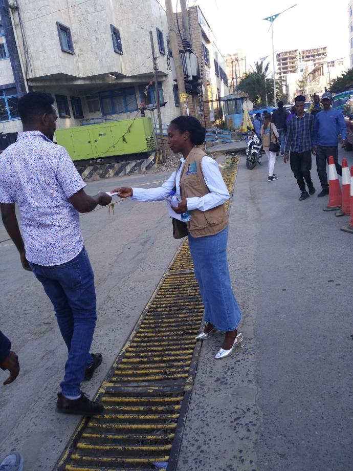 The promotion activity was held at four key locations: 70 Karie, Adi-Shumduhun Street, Adi-Hawusie Street, Romanat, and CBE Main Office Street. A team of 16 dedicated volunteers from the HAQI Foundation actively participated in the event, distributing 2000 flyers and 500 brochures, all meticulously tailored in the local language, Tigrigna.